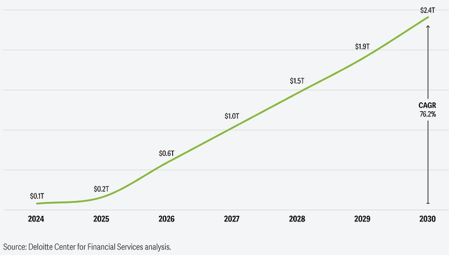 Similarly, the AUM for retail assets in the private markets is expected to scale rapidly. Deloitte anticipates exponential growth ahead, with $2.4 trillion allocated by US retail investors in private assets by 2030 (Figure 2).